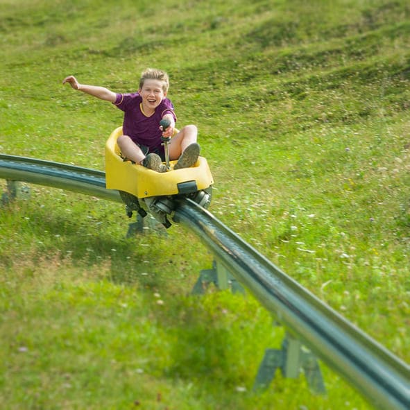 Rodelspaß gibt es nicht nur im Winter! In der Nähe findest du gleich drei Bahnen, die auch im Herbst und bei trockenem Wetter im Winter ein Erlebnis sind: den Spessartflitzer in Steinau an der Straße, die Sommerrodelbahn auf dem Hoherodskopf und den Rhönbob sowie die Doppel-Sommerrodelbahn auf der Wasserkuppe. Die Bahnen sind bis in den Herbst geöffnet und je nach Wetter sogar im Winter. Du fährst allein oder zu zweit und bestimmst dein Tempo selbst.